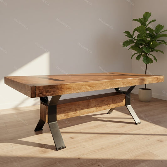 Each of our Kitchen & Dining Tables is handcrafted in Canada by skilled Mennonite artisans using sturdy wormy maple wood. Every piece highlights the natural charm of the wood, with distinct saw marks and grain patterns that make each piece truly unique.