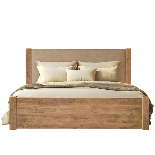Devon Solid Wood Bed With Fabric Headboard