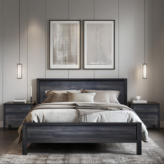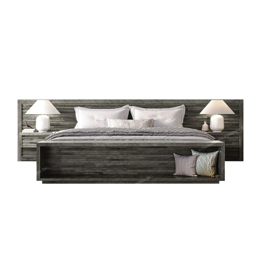 Lit en bois massif Ledge Rock avec table de chevet flottante double