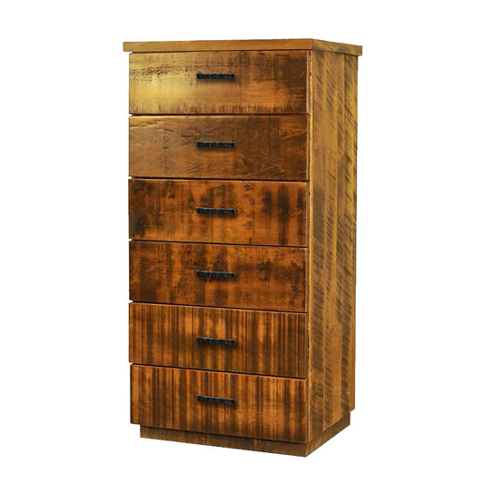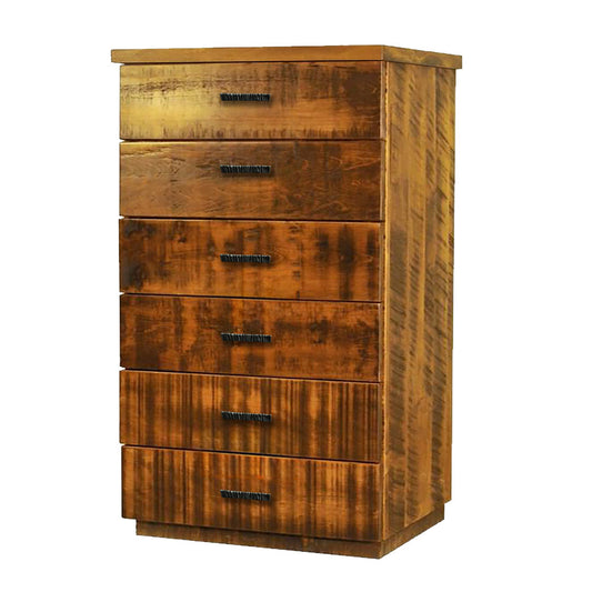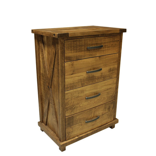 Add a touch of rustic charm to your home with our solid wormy maple wood chests and highboy. Handcrafted by skilled Mennonite artisans in Canada, each piece highlights the natural beauty of the wood with its unique saw marks and grain patterns. Embrace the one-of-a-kind feel of these timeless pieces in your space.