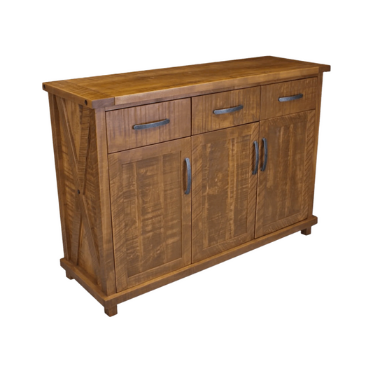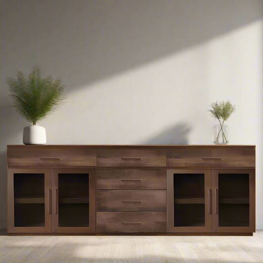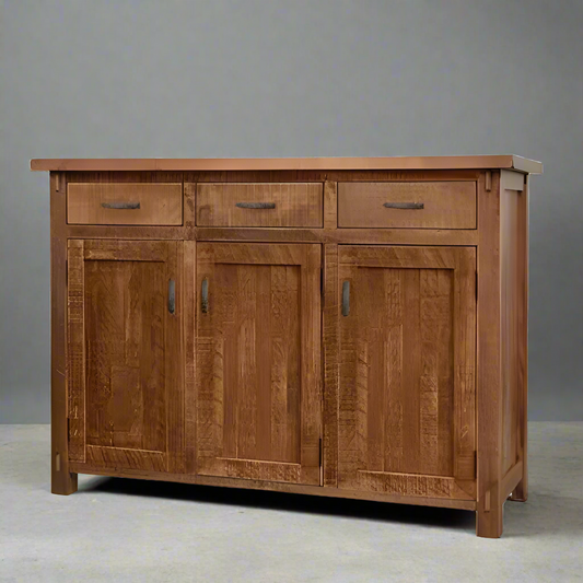 Experience the beauty and quality of our sideboards! Handcrafted by skilled Mennonite craftspeople in Canada, each piece is made with durable wormy maple wood, showcasing its natural elegance with saw marks and grain variations. Indulge in a truly unique and exclusive addition to your home.