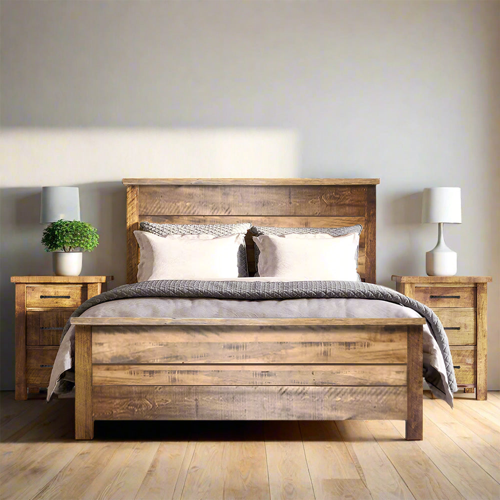 Experience the natural beauty and craftsmanship of our Edgewood Solid Wood Flat Top Bed. Handcrafted by Mennonite artisans in Canada, this bed is made from solid wormy maple wood, showcasing unique saw marks and grain patterns. Each piece is truly one-of-a-kind, adding charm and character to any bedroom.